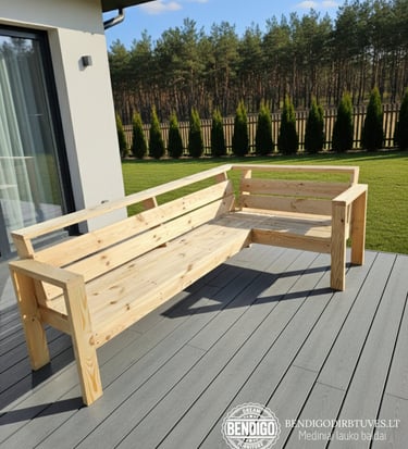 Čia galite pamatyti dalį mūsų kurtų medinių lauko baldų projektų. Galerijoje pateikiami stalai, suolai, gultai, poilsio zonų baldai ir individualūs sprendimai terasoms bei sodams. Kiekvienas baldas gaminamas rankomis, naudojant kruopščiai atrinktą medieną ir patikimas medžiagas, kad baldai būtų tvirti, patogūs ir ilgaamžiai.